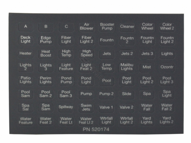 Pentair 520344 Label Set For IntelliTouch iS10 Spa-Side Remote; 10/Pack