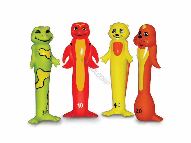 Poolmaster(R) Incorporated, Games & Toys, Soft Funny Dive Animals; Includes: Set of (4) Numbered Dive Animals, Color: Multi-Colored, Design: flexible, soft molded Design, Size: 7" High, Material: Durable Latex, Age Grade: 8+