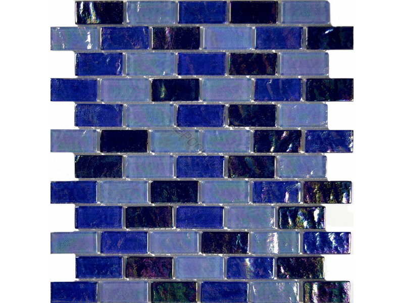 Artistry in Mosaics LLC, GC62348B6 Ocean Collection Tile; Blue Brick Blend Design, 1 Inch x 2 Inch, 6mm Thick, 12 Inch x 12 Inch Sheet, Glass