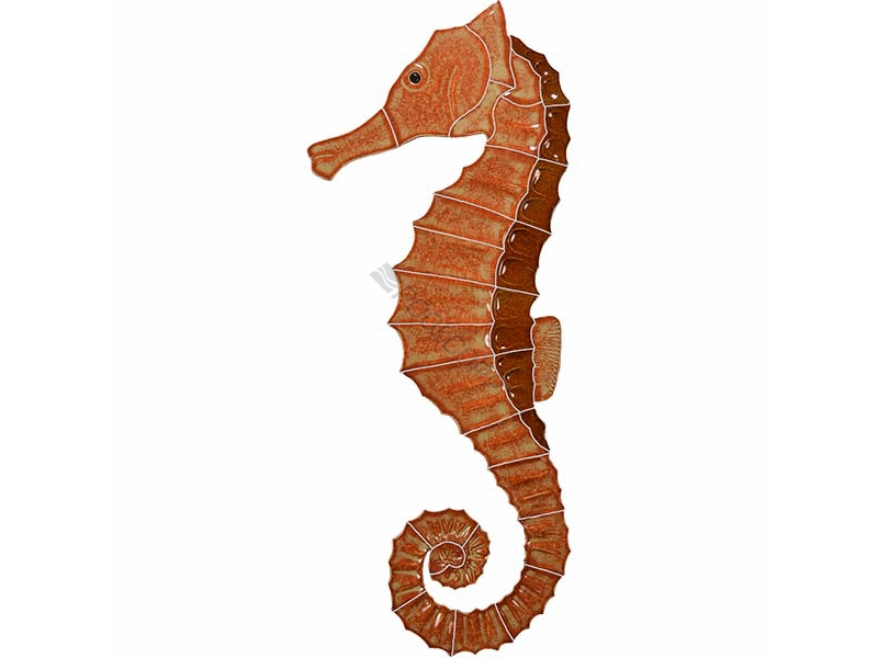 Artistry in Mosaics LLC, SEABROLL Designed Mosaics; Brown Seahorse - Large Left Design, 19 Inch x 8 Inch, 1/4 Inch Thick, Ceramic