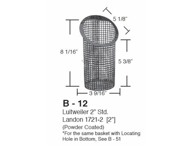 Aladdin B-12 Powder Coated Metal Slant Top Basket For Luitweiler 2 Inch Standard, 2 Inch Landon 1721-2