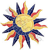 Artistry in Mosaics LLC, SMOMCOOM Designed Mosaics; Multi Color Sun Moon Design, 20 Inch x 20 Inch, 1/4 Inch Thick, Ceramic