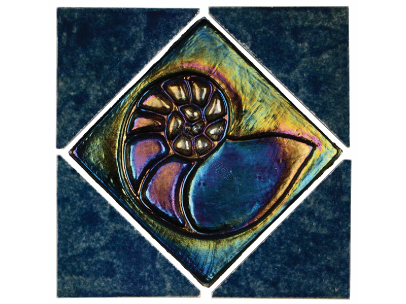 NPT TILE, BLG-AQMARINE DECONT Aquarius Collection Tile; Aquamarine Blue Lagoon Nautilus Deco Design, 6 Inch x 6 Inch, 3/Case