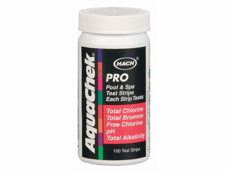 Hach 511710 AquaChek(R) Pro 5-In-1 Test Strip; Total Chlorine/Total Bromine/Free Chlorine Testing, 100 Strips/Bottle, 12 Bottles/Case