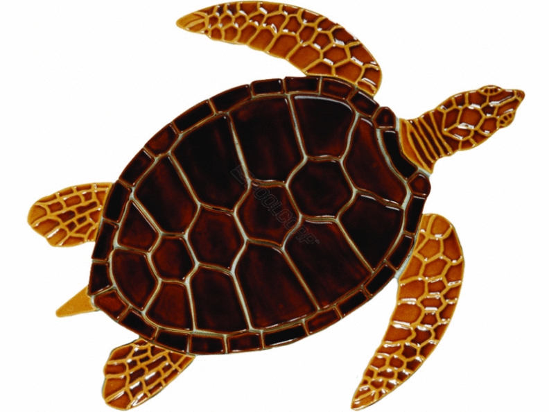 Custom Mosaics, GT7B-5 Turtles and Mermaids Collection Designed Mosaics; Brown Sea Turtle Design, 5 Inch x 5 Inch