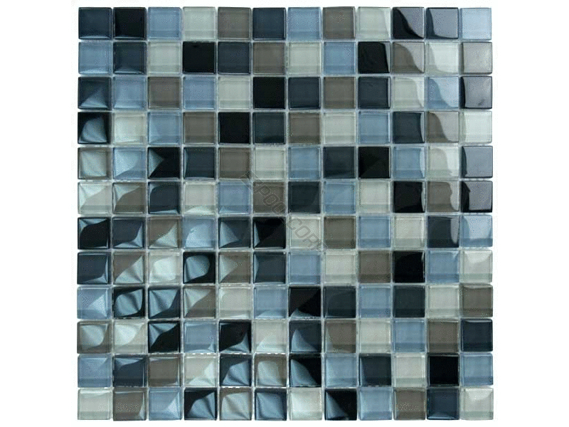 Artistry in Mosaics LLC, GC82323K1 Crystal Collection Tile; Black Charcoal Gray Taupe Blend Design, 1 Inch x 1 Inch, 8mm Thick, 12 Inch x 12 Inch Sheet, Glass
