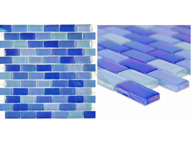 Artistry in Mosaics LLC, GC82348B7 Crystal Iridescent Collection Tile; Bright Blue Blend Design, 1 Inch x 2 Inch, 8mm Thick, 12 Inch x 12 Inch Sheet, Glass