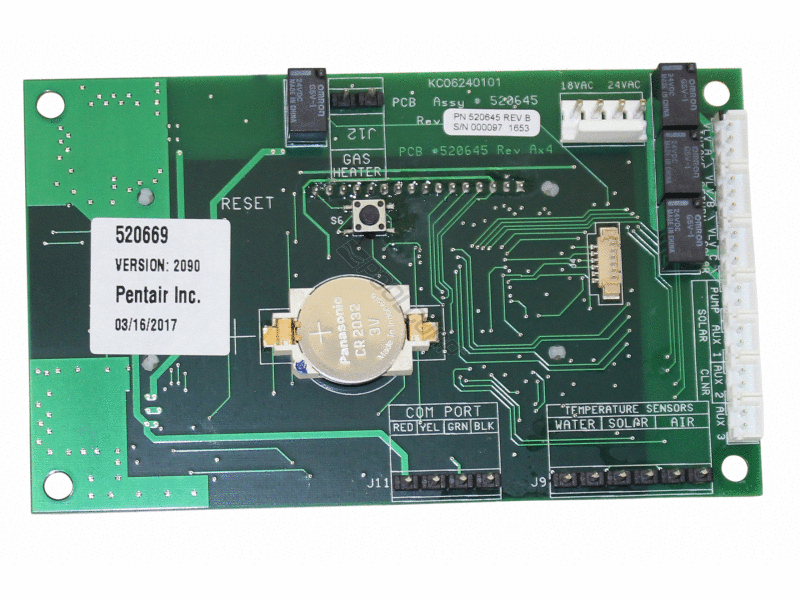 Pentair 520940Z Printed Circuit Board For SunTouch(R) Pool/Spa Solar Control System